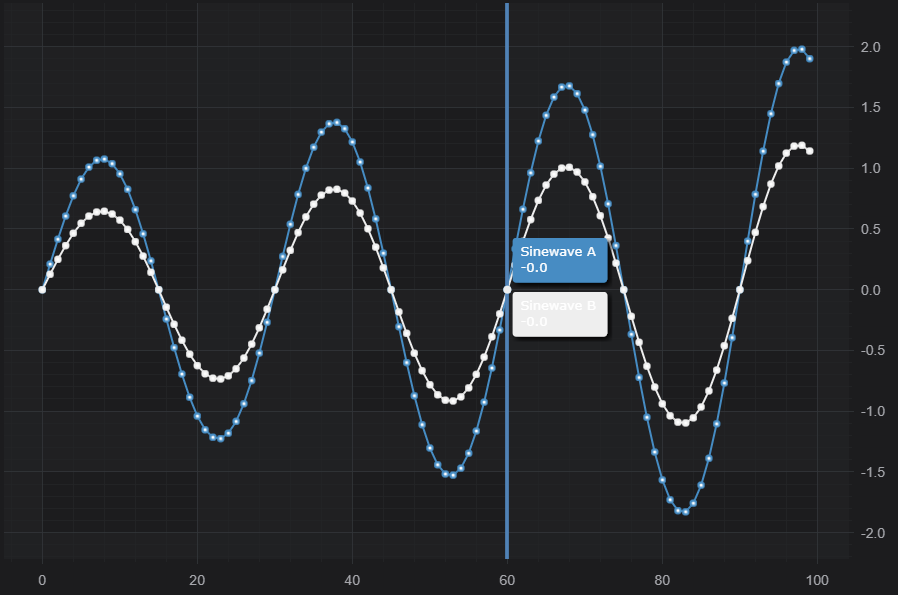 Besides common features which are inherited from the ChartModifierBase📘 class, the RolloverModifier📘 allows adding custom or standard tooltips to a chart (per series), and consuming the tooltip data in another area of your UI (custom legends).
