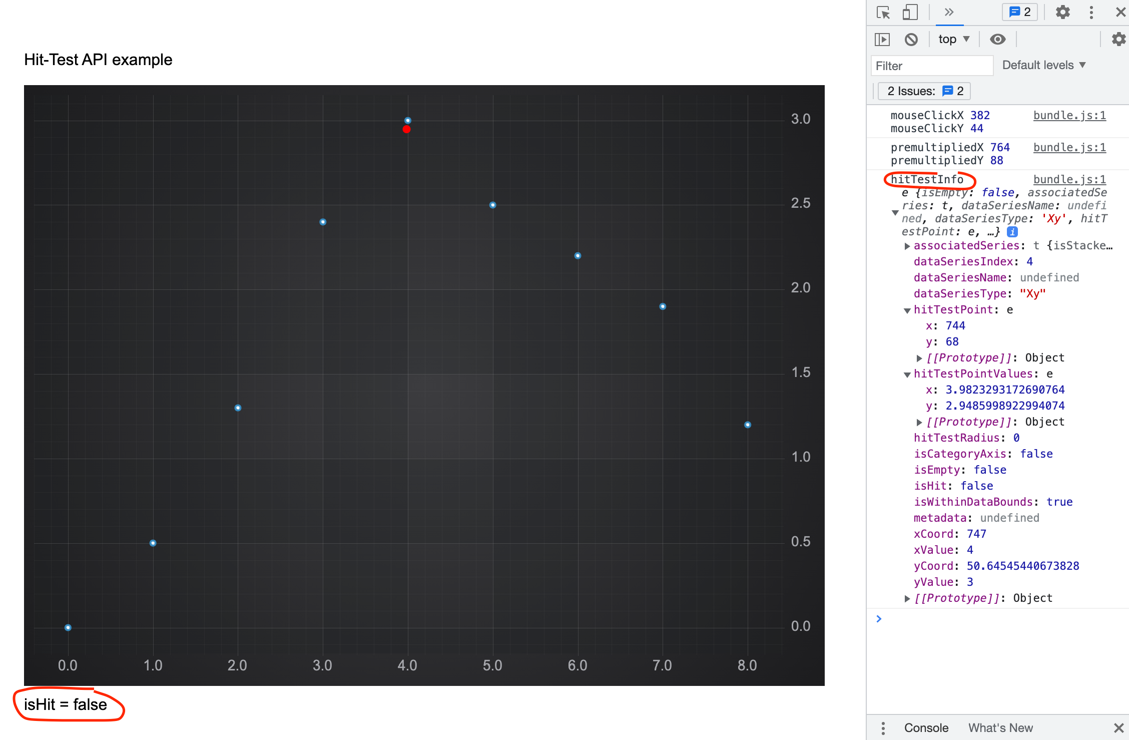 This is the full example of the hitTest method on Scatter Series.