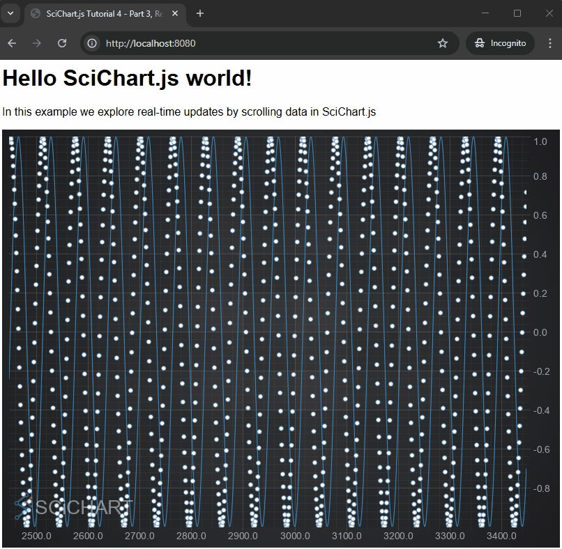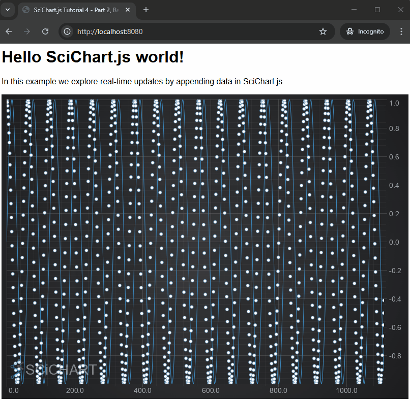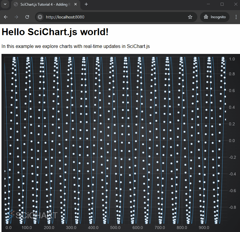 In the previous tutorial we explained how to add zooming and panning behavior to a JavaScript Chart using SciChart.js. In this tutorial, we are going to show you how to add realtime updates.