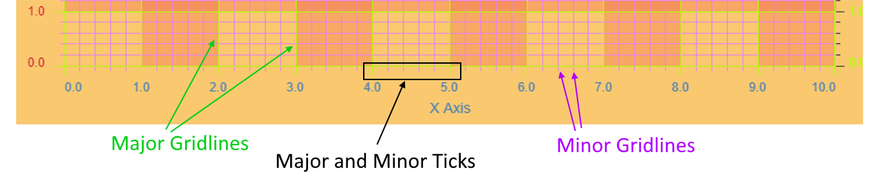 An Axis is responsible for drawing its labels, title but also the gridlines facing away from it. Gridlines are subdivided into four categories: