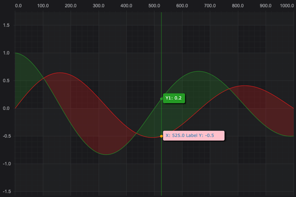 The Rollover Line itself can be styled by setting the rolloverLineStrokeThickness📘 or rolloverLineStroke📘 properties as follows. It can also be hidden with the showRolloverLine property📘.