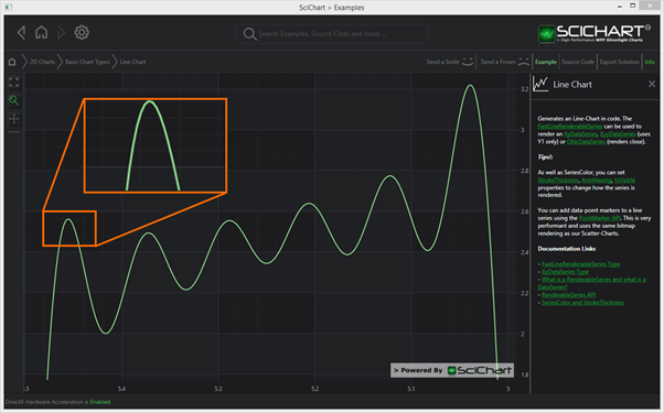 The HighSpeedRenderSurface was the first plugin to be developed for SciChart. Based on the open-source WriteableBitmapEx library, the HighSpeedRenderSurface provides a quick, integer coordinate, bitmap-based engine for drawing series fast in software.